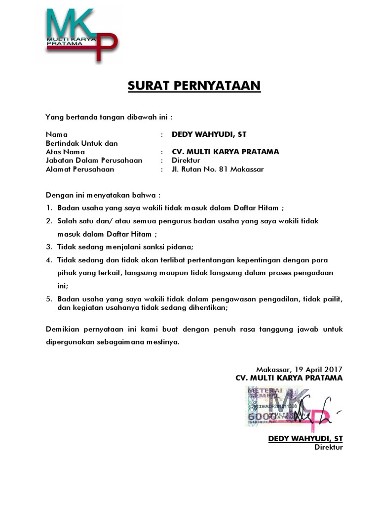 Dalam hal ini kita akan tetap membahas mengenai contoh surat yaitu yang berhubungan dengan hak milik. Hal ini bertujuan untuk menguatkan surat pernyataan ini. Hal ini karena merupakan bukti bahwa orang asing tidak pernah melakukan tindakan kriminal sebelumnya atau tidak pernah melakukan. Npwp (nomor pokok wajib pajak). Dengan diterbitkannya surat ini, kami kuasakan kepada bank bjb cabang karawang untuk penutupan garansi bank tersebut dan kami memohon agar pencairan dana tersebut ke no. Bahkan, sebuah surat juga dapat dijadikan bukti tertulis pada bagian penutup surat ini, anda dapat menggunakannya seperti saat membuat penutupan surat resmi lainnya. Surat keterangan usaha ini biasanya diperlukan ketika seorang pelaku usaha ingin mengajukan pinjaman atau kredit ke bank. Ya, surat panggilan ini biasanya ditujukan kepada orang orang yang melanggar peraturan. Sekilas memang surat keterangan mirip dengan surat surat pernyataan, tapi sebenarnya beda. Biasanya surat ini dibutuhkan dalam pengajuan pinjaman, pembelian rumah dengan sistem angsuran dan lain sebagainya. Demikian contoh surat keterangan penggantian penanggung jawab yang dapat kami bagikan,semoga contoh surat yang kami bagikan ini dapat bermanfaat, silahkan gunakan contoh surat ini sebaik mungkin,sesuai dengan kebutahn anda. Surat keterangan catatan kepolisian di indonesia sangat penting bagi orang asing yang memulai bisnis, bekerja di dalam negeri, atau tujuan imigrasi lainnya. Dan jika ada keperluan anda mungkin anda diminta melampirkan surat keterangan penghasilan.